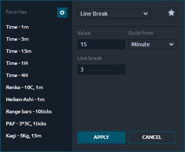 The most common number of Line Break setting is 3. It means that the closing price of the current line is compared to the closing price of the third line ago.
