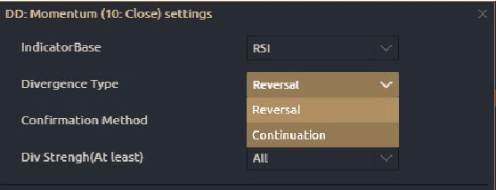 Divergence Type: choose between two types of Divergence; the Regular (Reversal) type and the Hidden (Continuation) type.