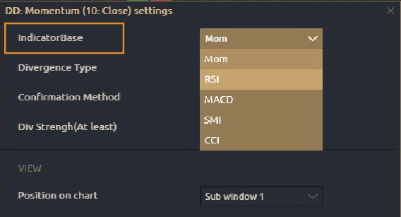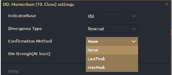 It is the method to confirm the sign. When Divergence indicator sends signs whether they are reversal or continuous; then this points to how high or low which confirms the signal. You can change the confirmation method as shown in the following example.