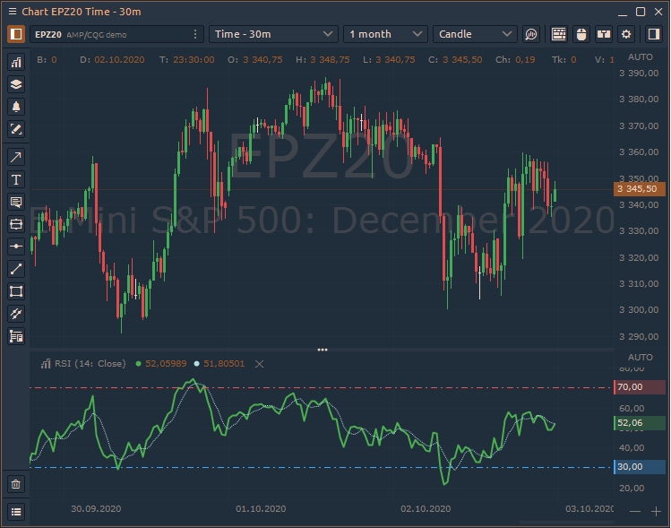 RSI is considered overbought when above 70 and oversold when below 30. These traditional levels can also be adjusted if necessary to better fit the asset. For example, if an asset is repeatedly reaching the overbought level of 70 you may want to adjust this level to 80.