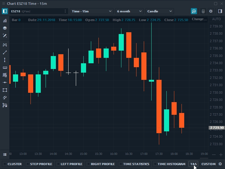 Historical Time & Sales tool shows all trades for the selected bar in the form of Time & Sales. Once you have activated the Historical T & S and chose the desired historical bar on the chart, all its trades will be shown in the table in the order of their execution.