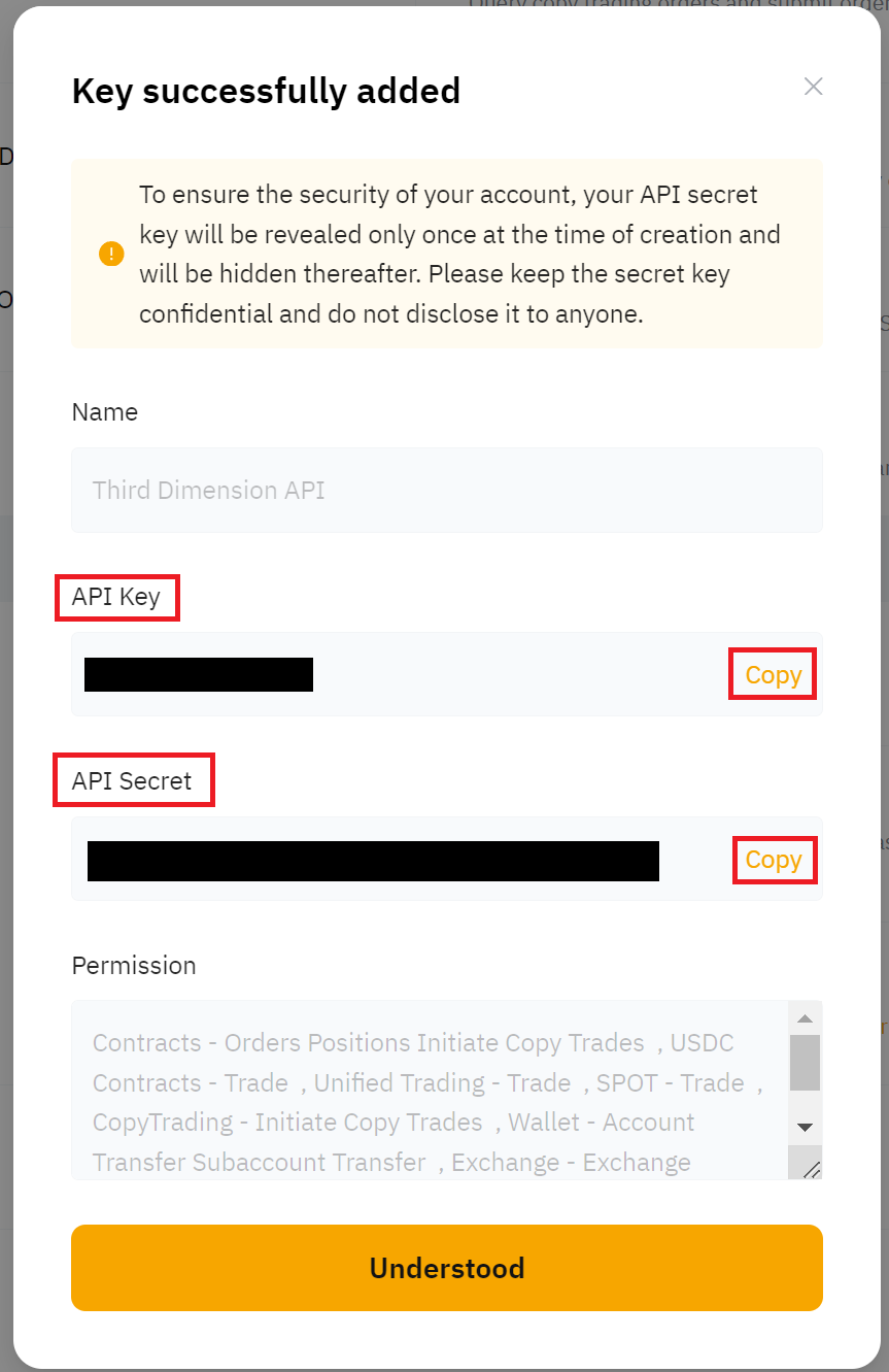 The following pop-out window will appear. Please configure your API key according to your trading needs.