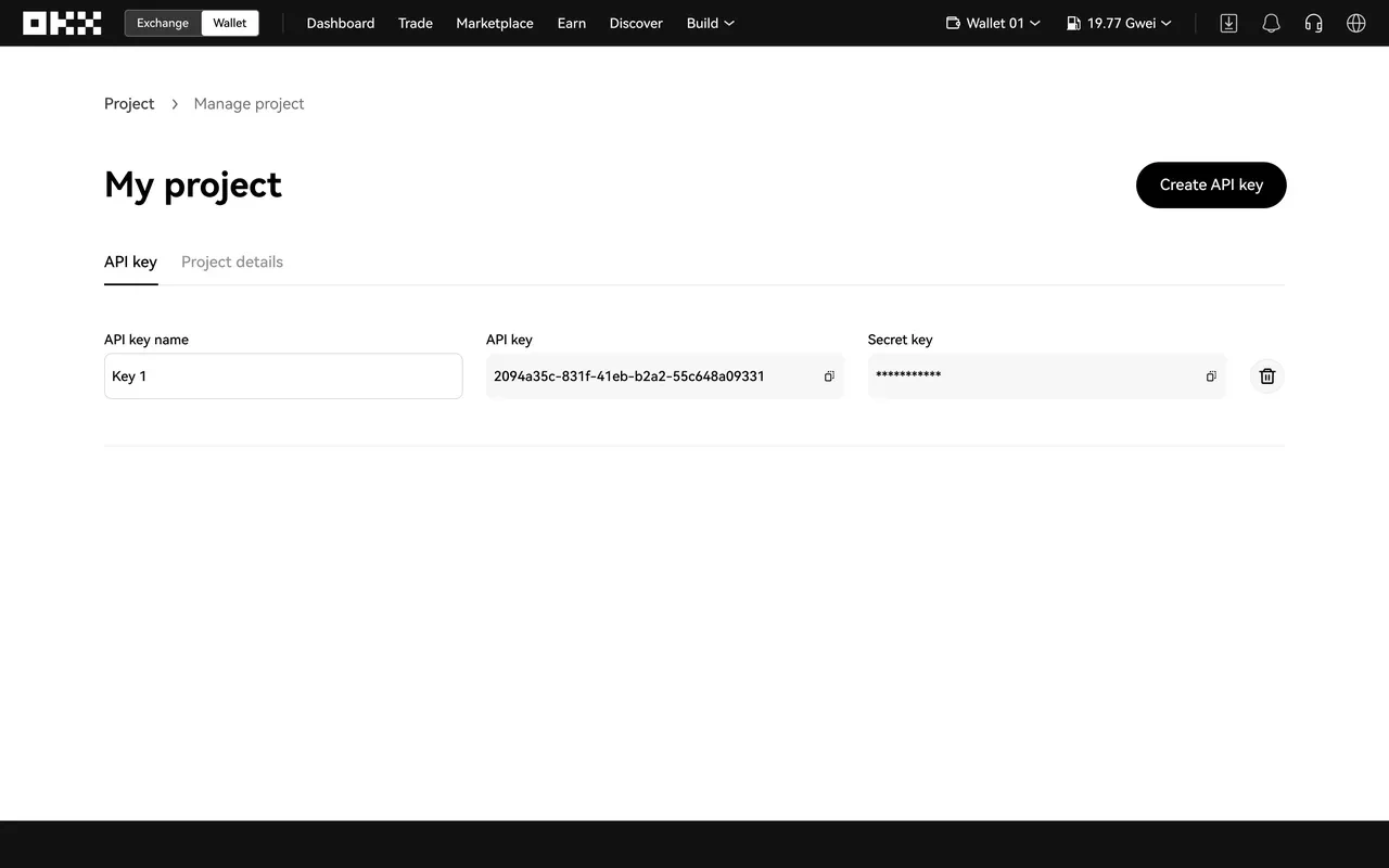 Click Create API key.