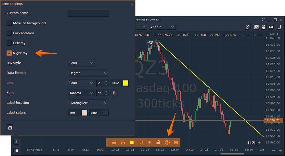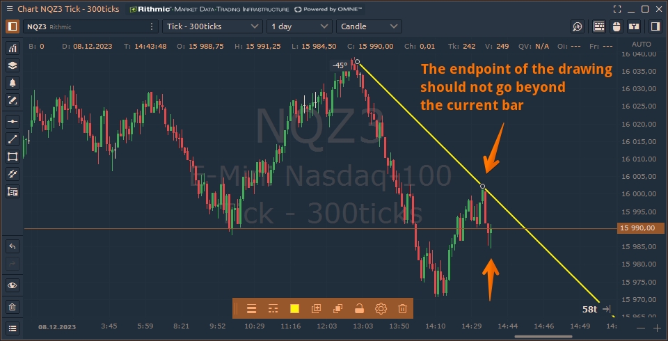 To prevent changes in drawings, we recommend placing the endpoint of the drawing before the current (forming) bar. Additionally, we suggest enabling the 'Right Ray' option in the settings of the respective drawing.