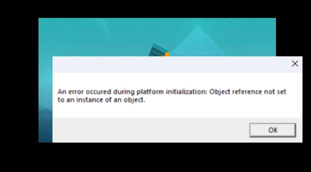 An error occurred during platform initialization: Object reference not set to an instance of an object