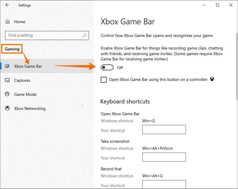 The easiest method is to start troubleshooting by simply disabling Game Bar. This could be helpful to remove the key combination and use it for other purposes. Now, you can take these steps: