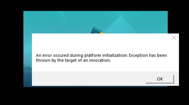 An error occurred during platform initialization: Exception has been thrown by the target of an invocation