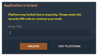 Application inactivity lock. This option will lock the platform after a set period of inactivity, preventing any actions until the established PIN code is entered. If you remove the set password in settings, the lock feature will not be activated.