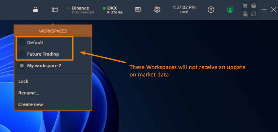 Unload inactive workspaces. If this option is enabled, previously created workspaces will not receive market data updates, reducing memory usage.