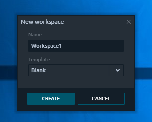 When creating the new workspace, you have an ability to specify its future name and select whether it should be Blank, once created, or should contain some predefined panels set.