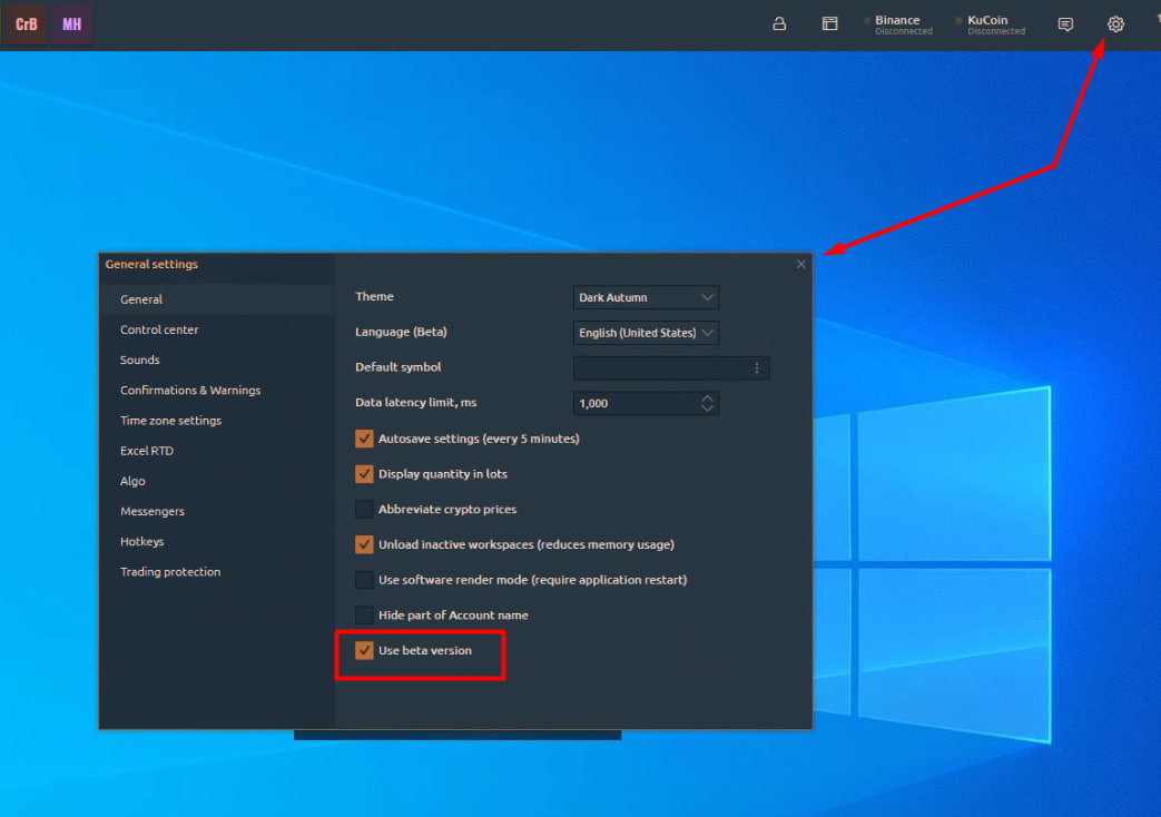 Beta Version. When this option is activated, you will receive updates to new functionality that is still in testing. We strive for our traders to use fully working functionality, but for this, we need the help of each user. Therefore, we ask as many people as possible to use the Beta version to inform us about possible bugs that eluded our testers.