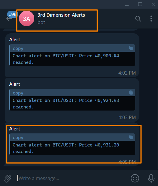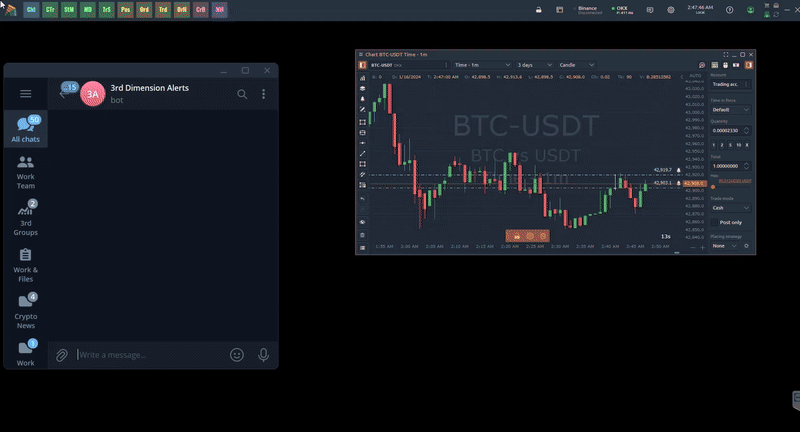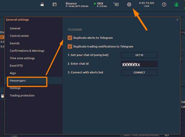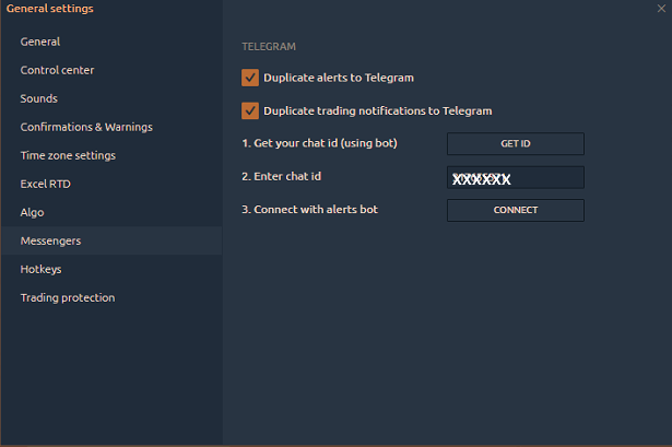 Get important notifications directly to your Telegram account about Price Targets and Trading operations