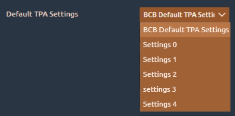 Users can choose from predefined TPA settings or select from five additional custom settings (Setting0, Setting1, Setting2, Setting3, Setting4) to tailor TPAs to their trading preferences.