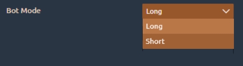 Users specify the bot's mode as either "Long" or "Short," indicating whether the bot should search for opportunities in a bullish or bearish market.