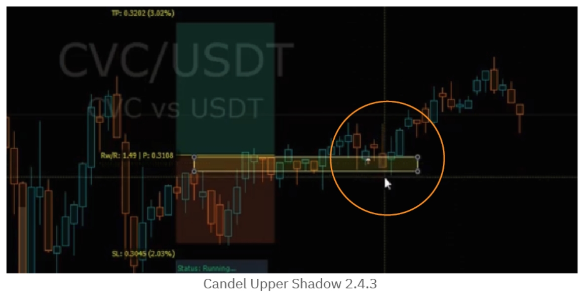 Candle Upper Shadow: Sets the trigger price to the open or close (whichever is higher) of the candle forming the last peak. Usage: This option considers the upper shadow of the candle forming the last peak, setting the trigger price to the higher of the open or close.