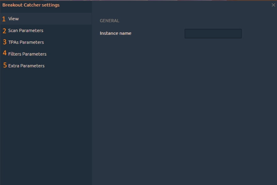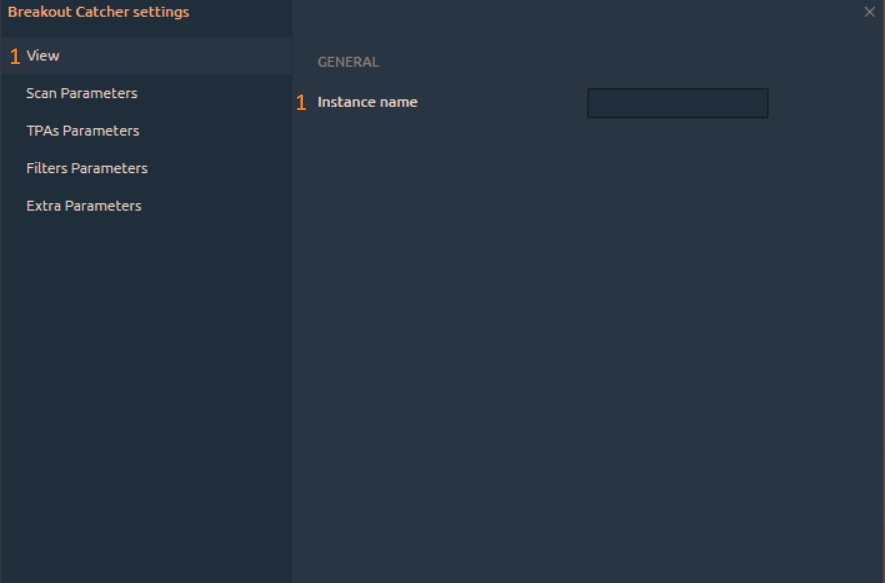 This section allows users to assign a unique name to their current instance of the Breakout Catcher Bot. The instance name is a user-defined label that helps differentiate various bot configurations, especially for users managing multiple instances simultaneously and will be the first part of the creator name in the Trading Personal Assistances (TPAs) added by this instance of the bot.
