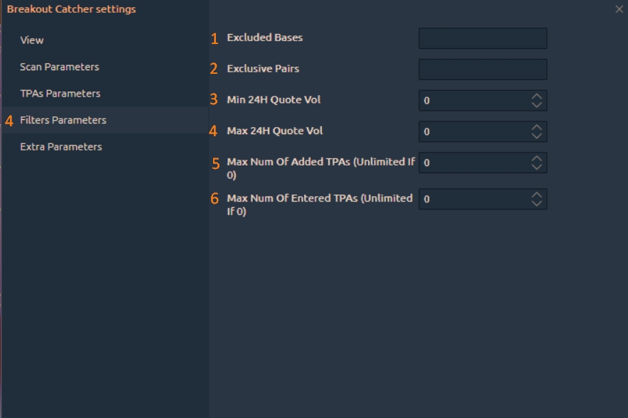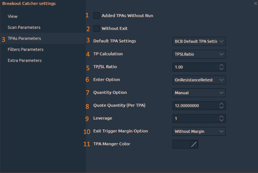 6_Current Entered TPAs: Specifies the count of TPAs that have been entered and are actively being managed by the Breakout Catcher Bot at the current moment.