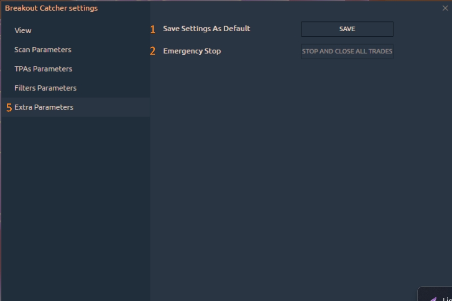When you choose Breakout Catcher from strategies and press the settings icon, you will see the settings divided into the next groups: