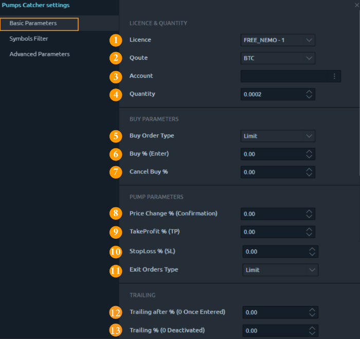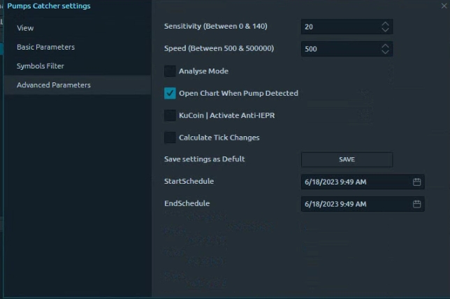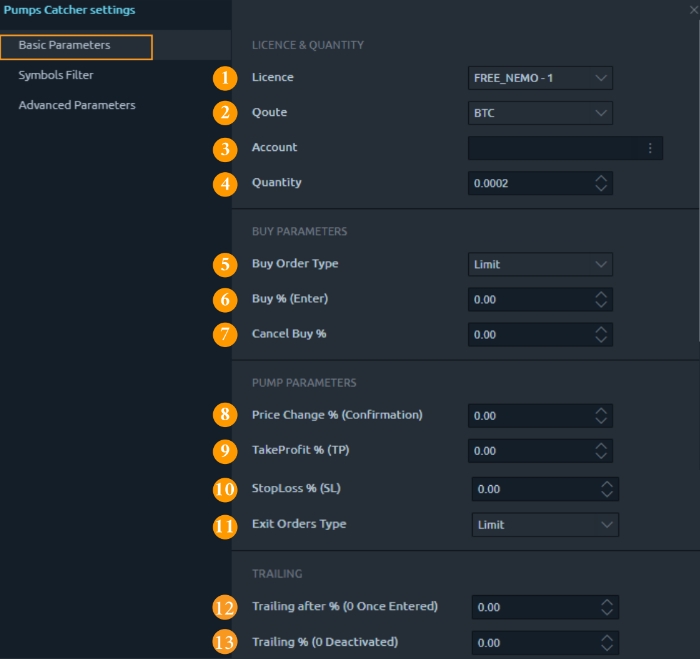 The Pump Catcher role, in brief, is that it observes any abnormal change in the price and makes purchases at the beginning of the price rise before the FOMO occurs and then sells (according to the percentage that you set in the settings before you start it), taking into consideration to sell before the fall in price or during the gaining Profits stage.