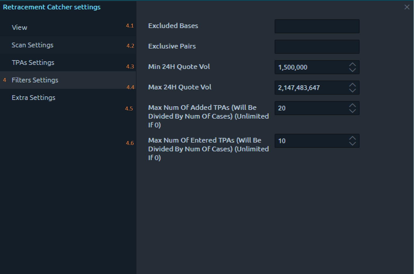 This numerical field lets users filter pairs based on the maximum 24-hour quote volume, helping to avoid overly volatile or illiquid assets.