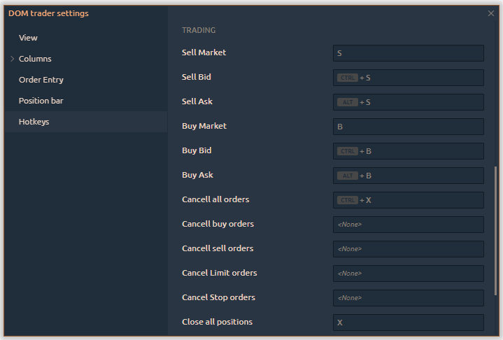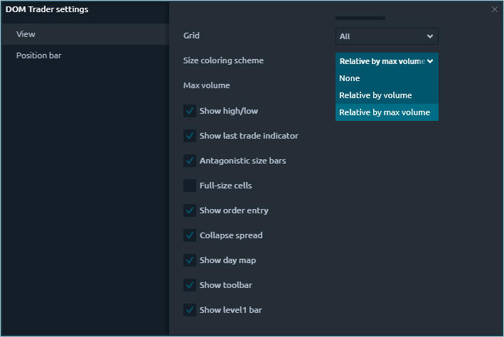 DOM Trader settings