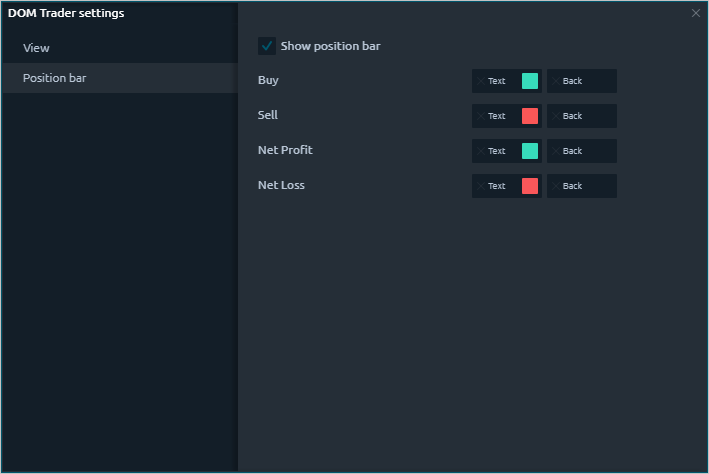 Additional settings of the DOM Trader allow you to customize general view for convenient display of data and the panel in general.