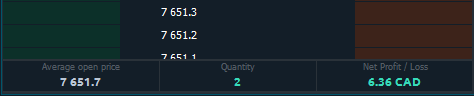 At the bottom of the DOM Trader is the Position Bar, which displays a brief info about an open position on the current trading instrument β the number of contracts, the average open price, current profit and loss.