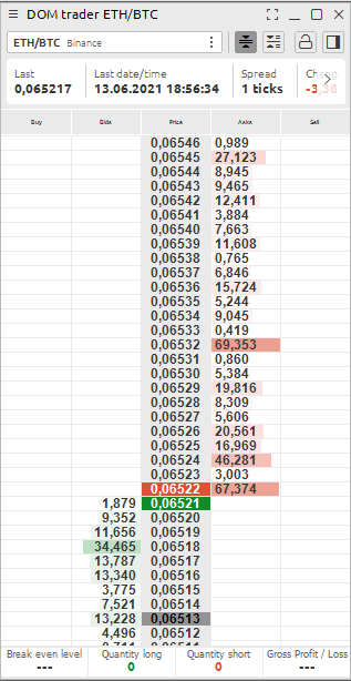 Now your Dom Trader should look like on the picture. Stretch the height of your Dom trader to the whole monitor and you will see all available information