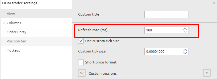 Refresh rate of the Dom Trader