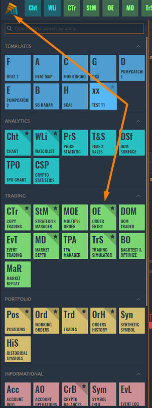 <figure><img src="https://content.gitbook.com/content/urdqk4sHwHHpr4J3s5P6/blobs/xlW132LexV7I2ozCX2P5/oe.png" alt=""><figcaption><p>Open Order Entry panle in general menu</p></figcaption></figure>
